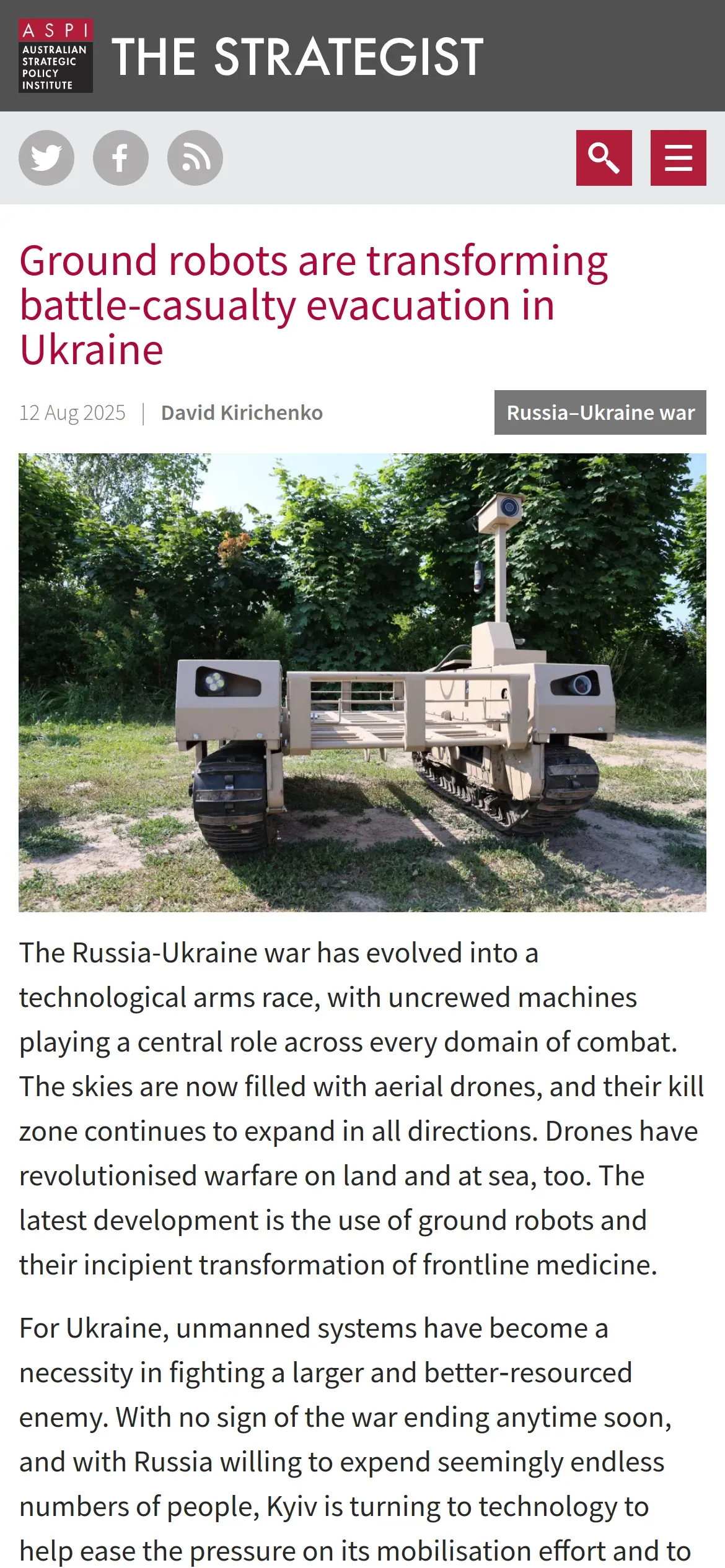 https://www.aspistrategist.org.au:443/ground-robots-are-transforming-battle-casualty-evacuation-in-ukraine/