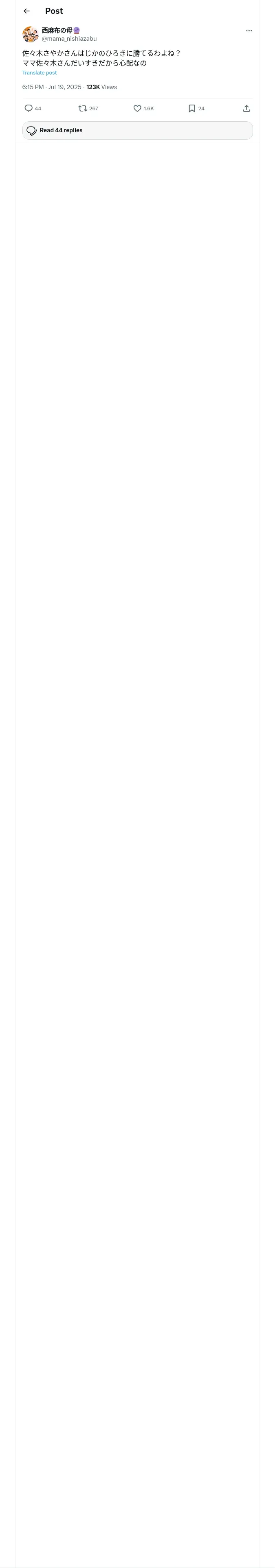 取得元URL: https://x.com:443/mama_nishiazabu/status/1946499186658361613