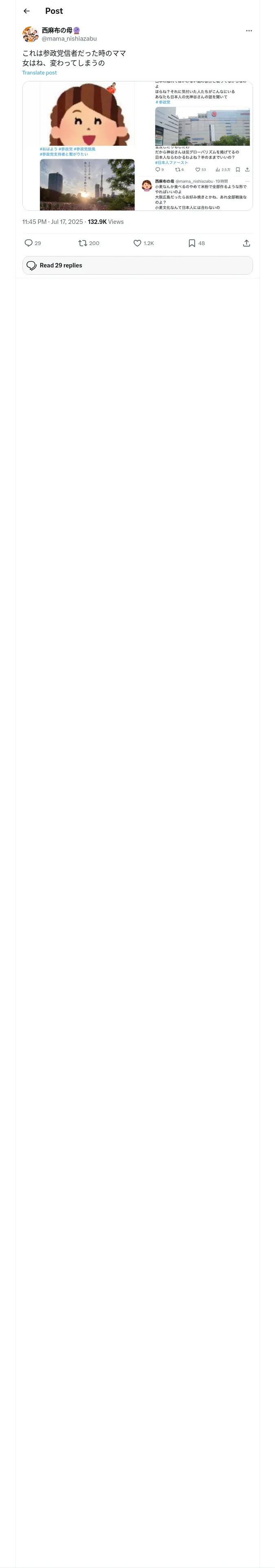 取得元URL: https://x.com:443/mama_nishiazabu/status/1945857393151148500