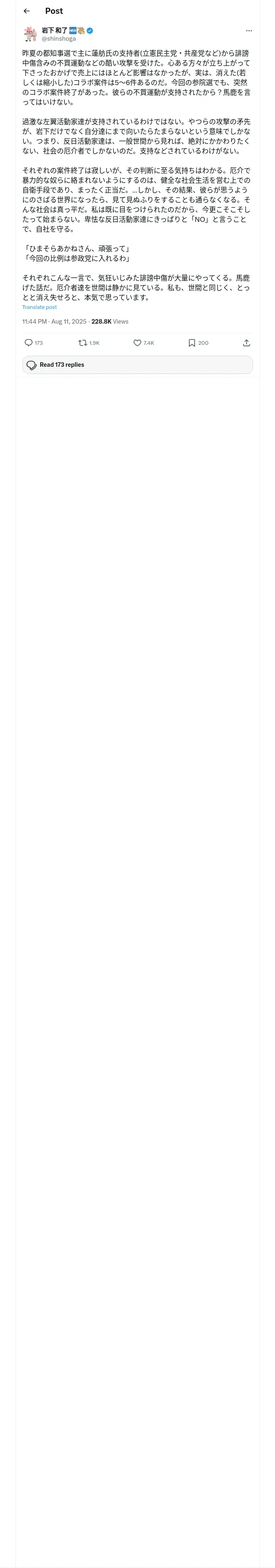 取得元URL: https://x.com:443/shinshoga/status/1954916902343757834