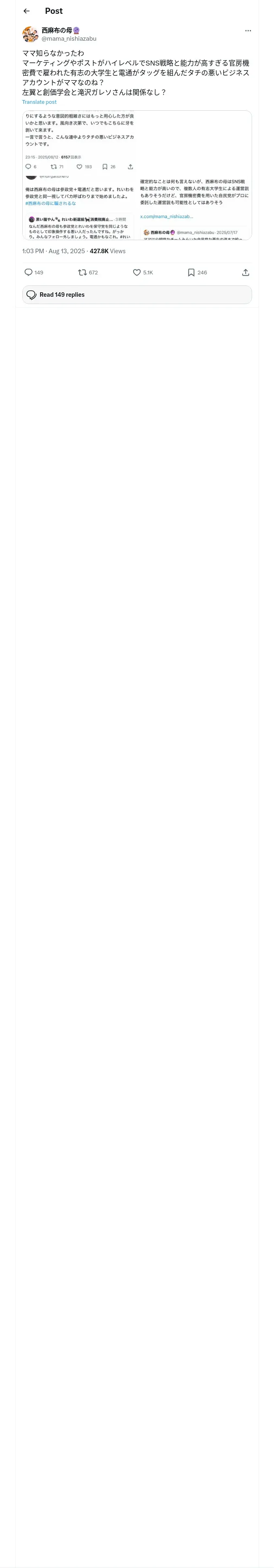 https://x.com:443/mama_nishiazabu/status/1955480213992902774