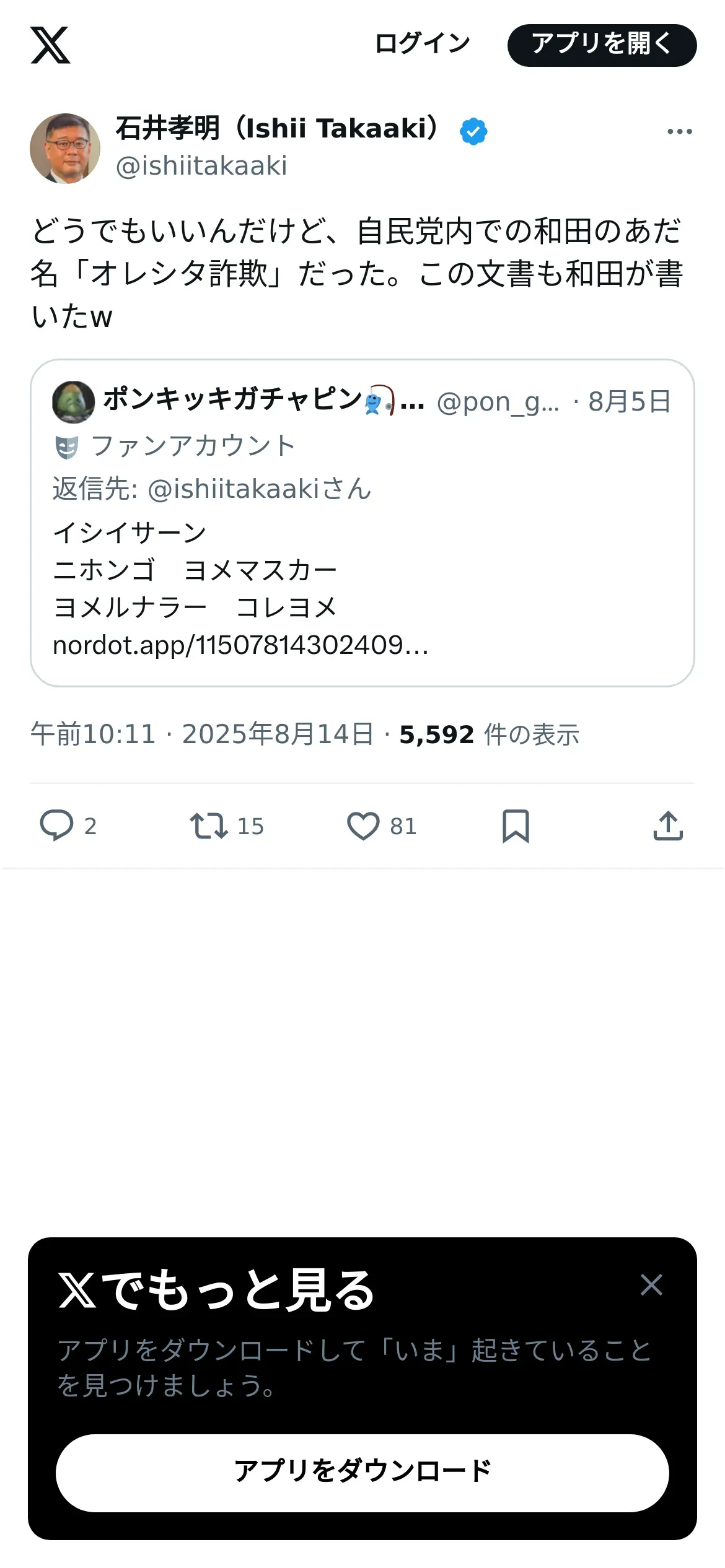 https://x.com:443/ishiitakaaki/status/1955799281727922567