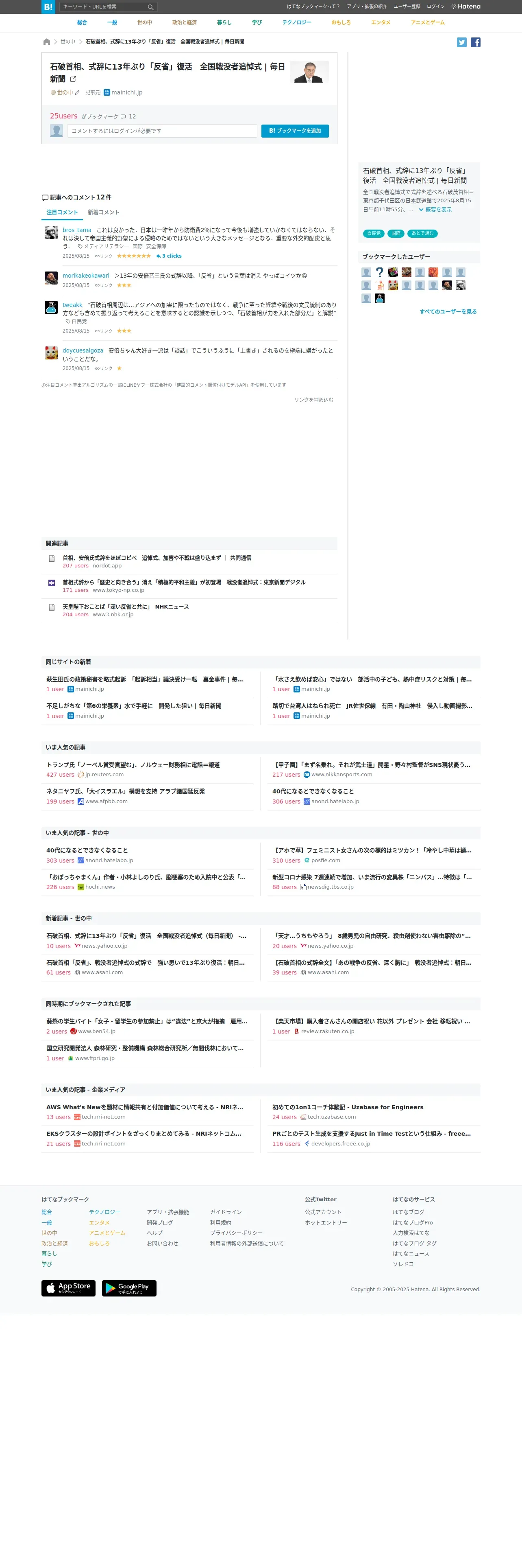https://b.hatena.ne.jp:443/entry/s/mainichi.jp/articles/20250815/k00/00m/010/010000c