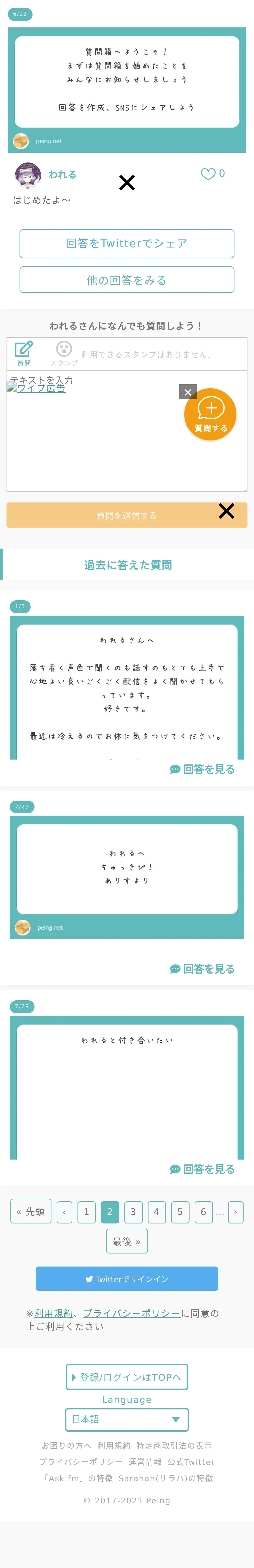 https://peing.net:443/ja/q/07581274-38b3-45a4-8565-ea55ca1e8ea0?page=2