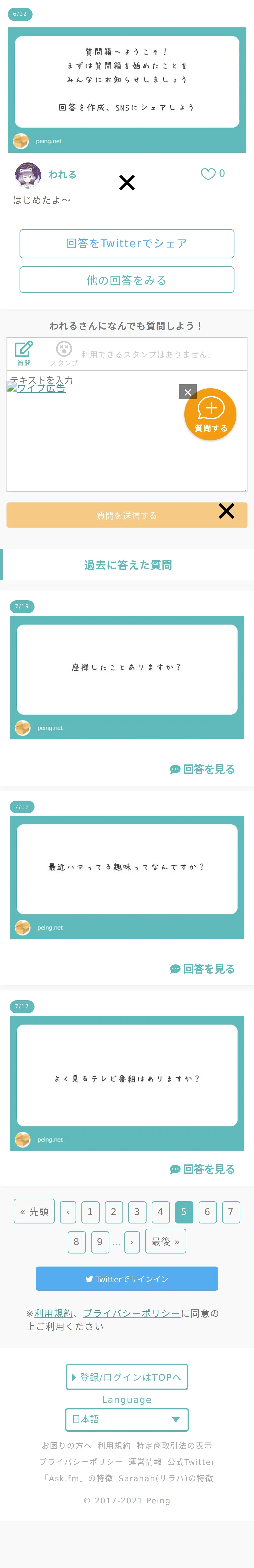 https://peing.net:443/ja/q/07581274-38b3-45a4-8565-ea55ca1e8ea0?page=5