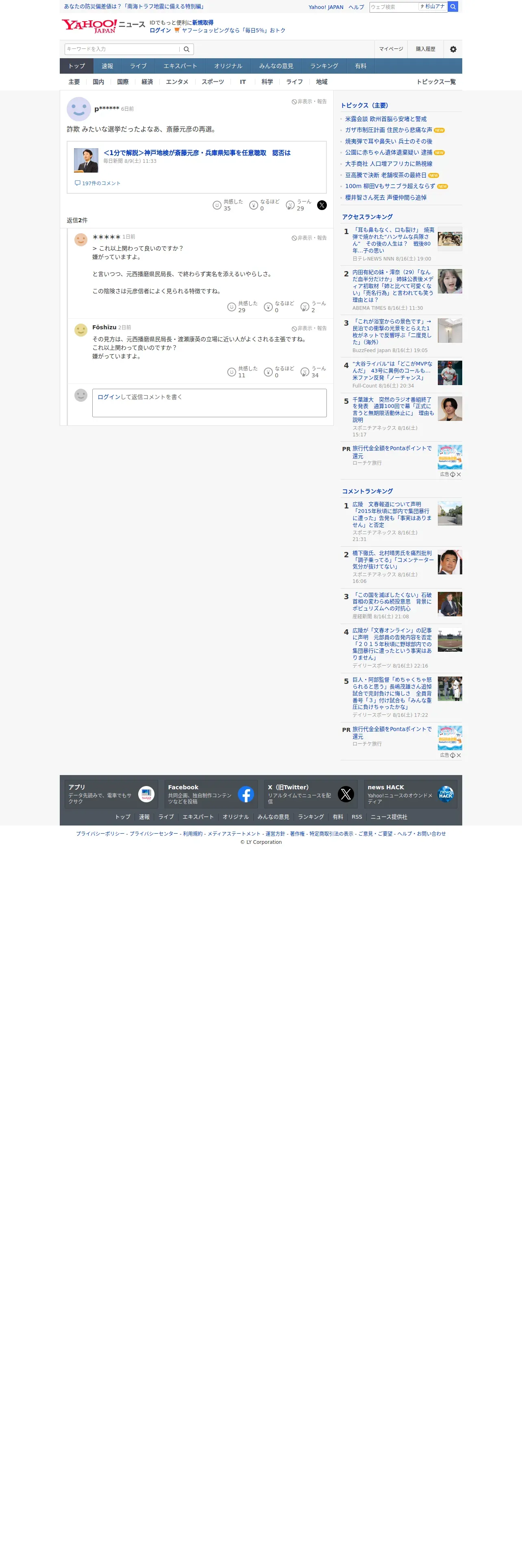 取得元URL: https://news.yahoo.co.jp:443/profile/news/comments/6367cd0e-25a9-4c0f-925a-0eec9a6e9018