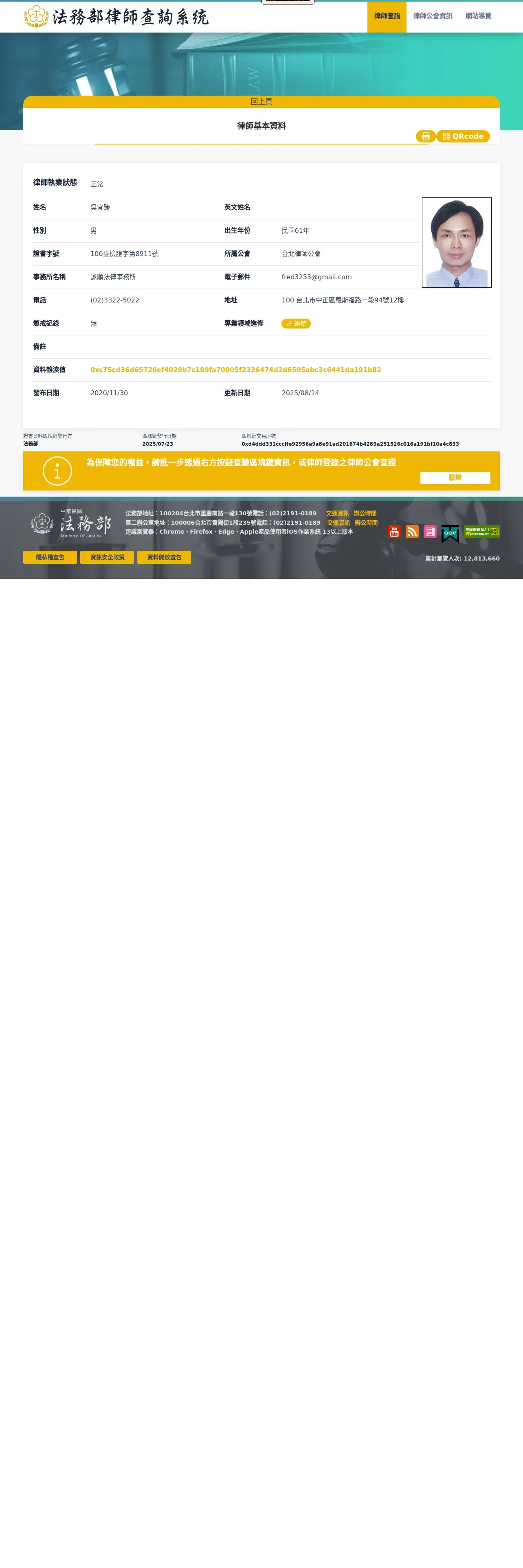 https://lawyerbc.moj.gov.tw:443/lawyer/0xc75cd36d65726ef4029b7c180fa70005f2336474d2d6505abc3c6441da191b82