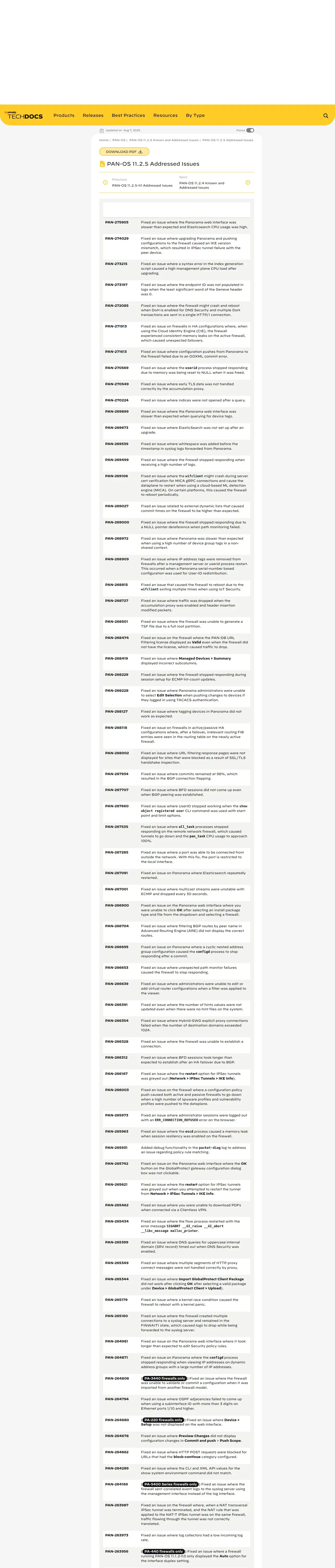 https://docs.paloaltonetworks.com:443/pan-os/11-2/pan-os-release-notes/pan-os-11-2-5-known-and-addressed-issues/pan-os-11-2-5-addressed-issues