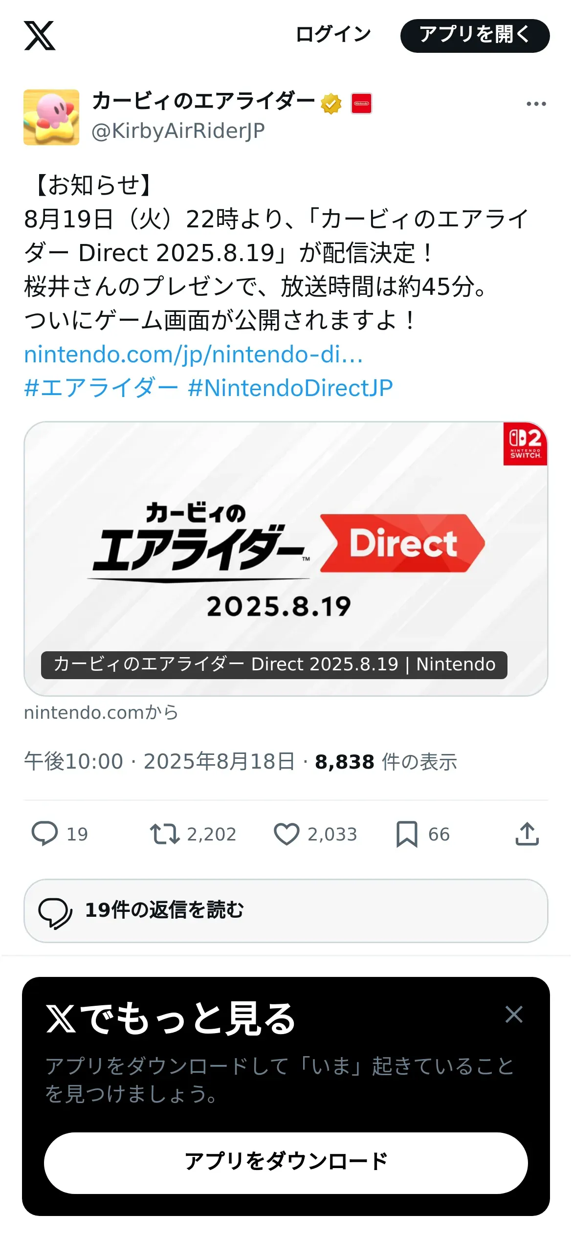 https://x.com:443/KirbyAirRiderJP/status/1957427264007856631