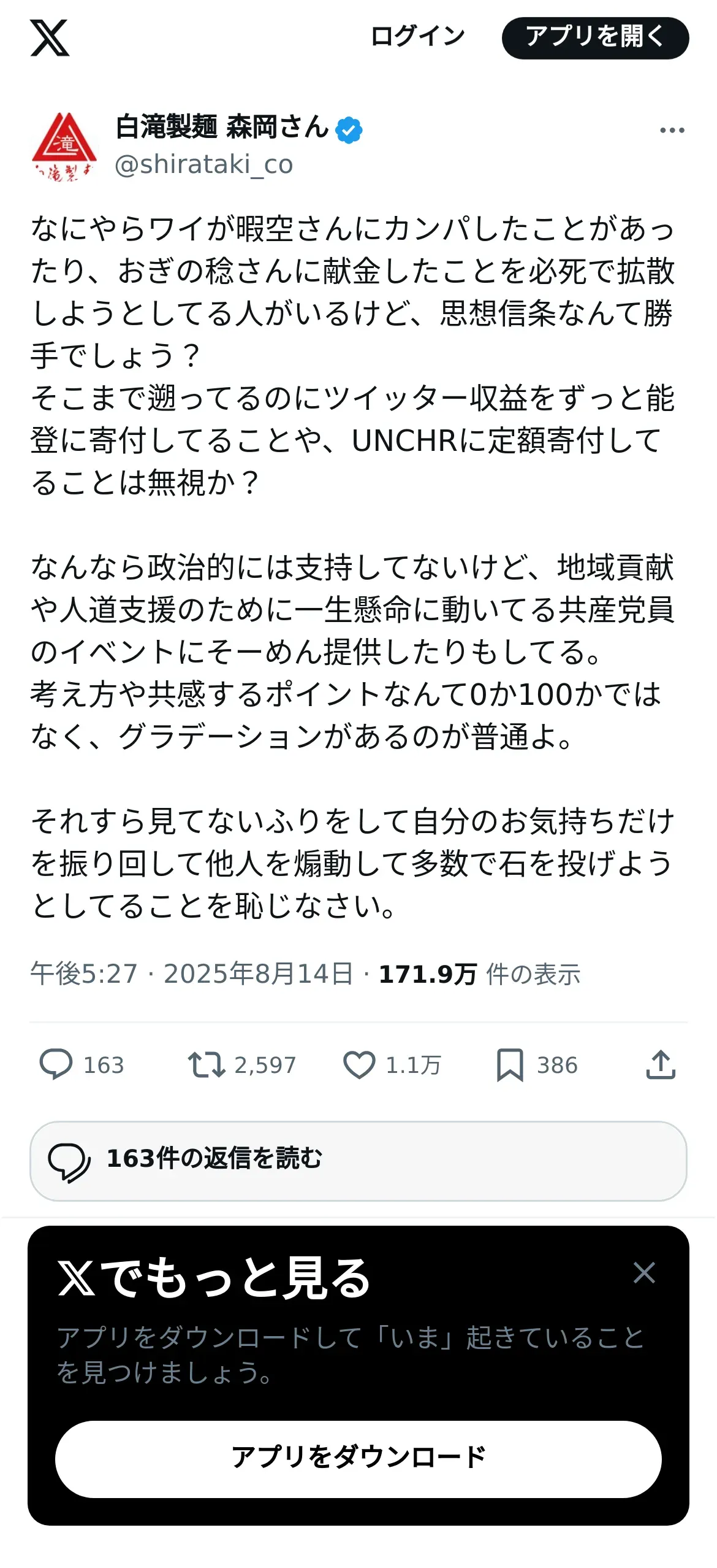 https://x.com:443/shirataki_co/status/1955909047452098846?t=aaFY1_ZabFE0jXEJd8OiYA&s=19