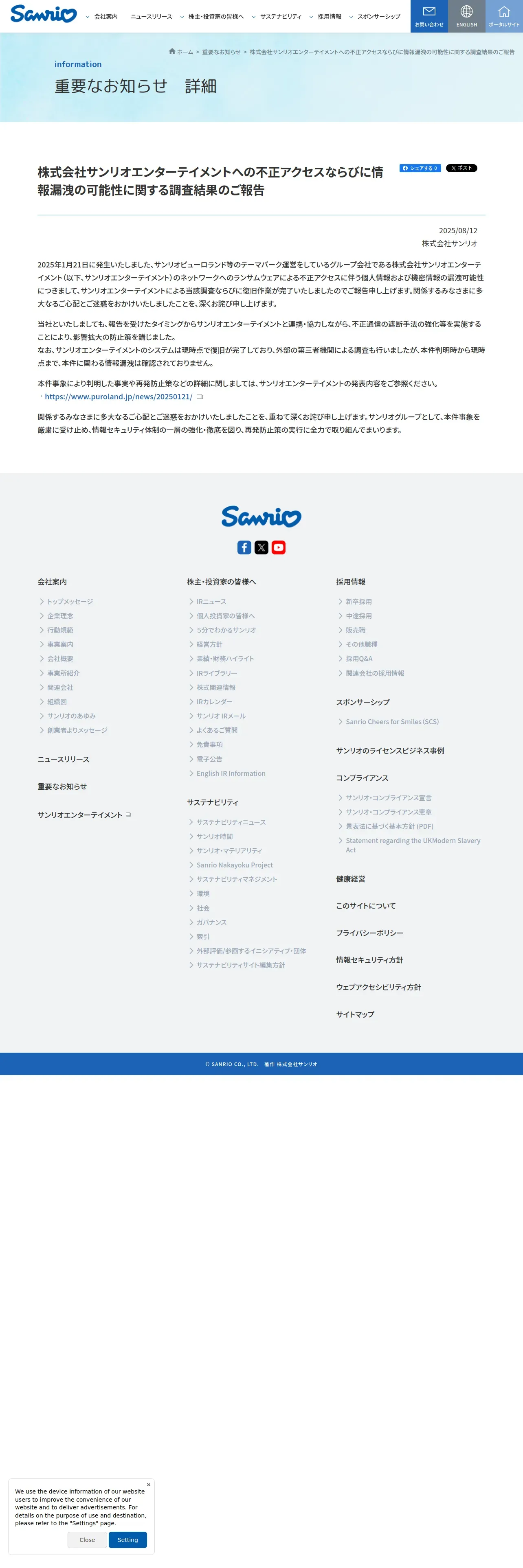 https://corporate.sanrio.co.jp:443/information/20250812/