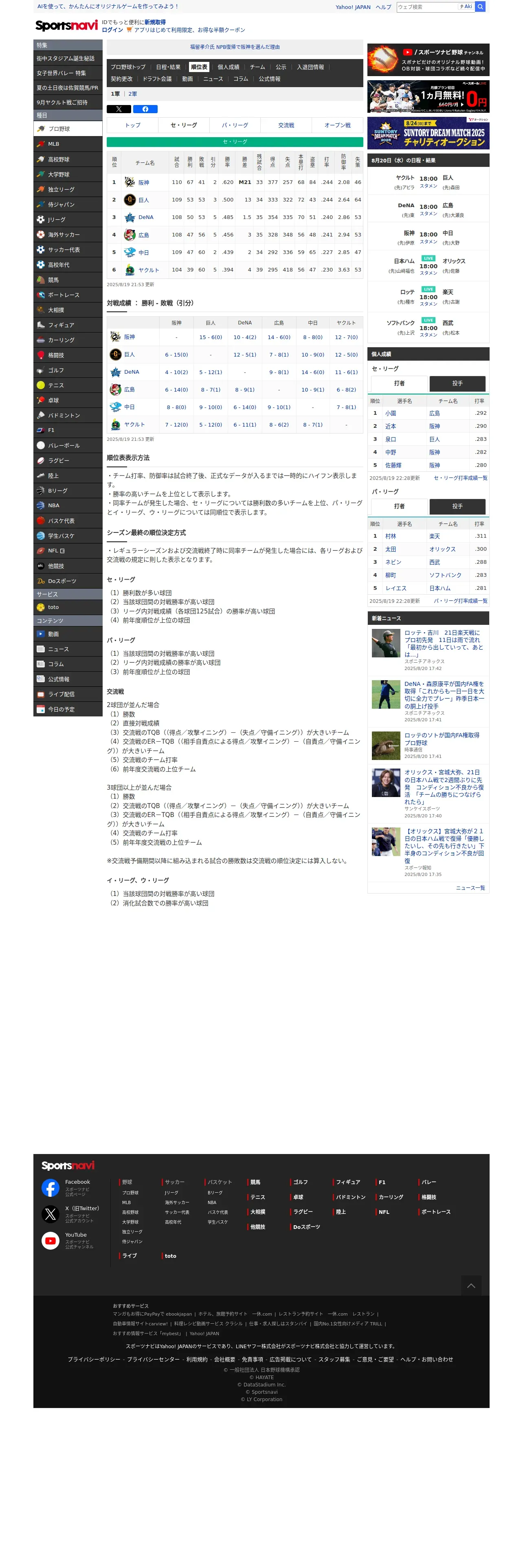 https://baseball.yahoo.co.jp:443/npb/standings/detail/1
