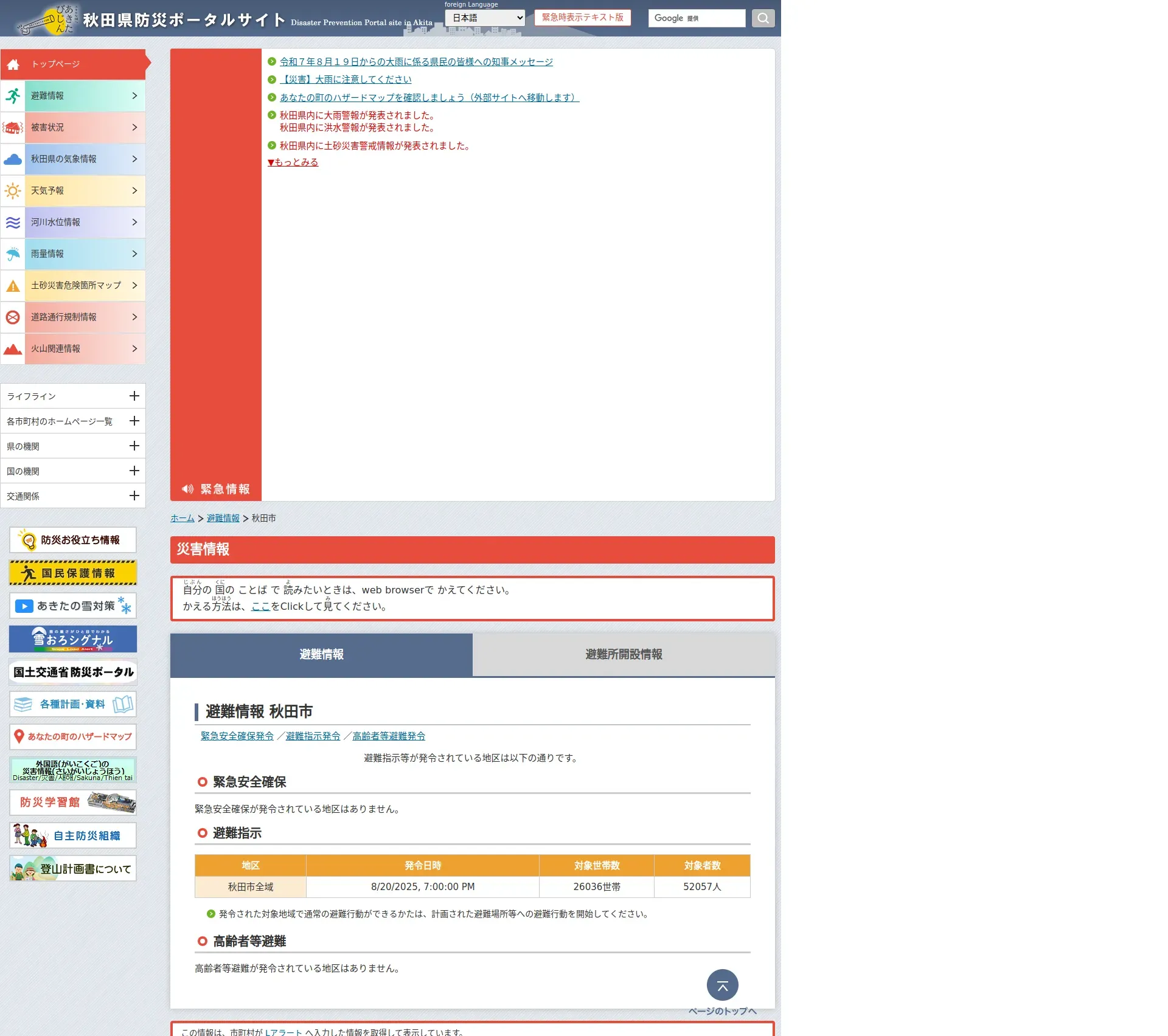 https://www.bousai-akita.jp:443/evac/city.html?city=052019
