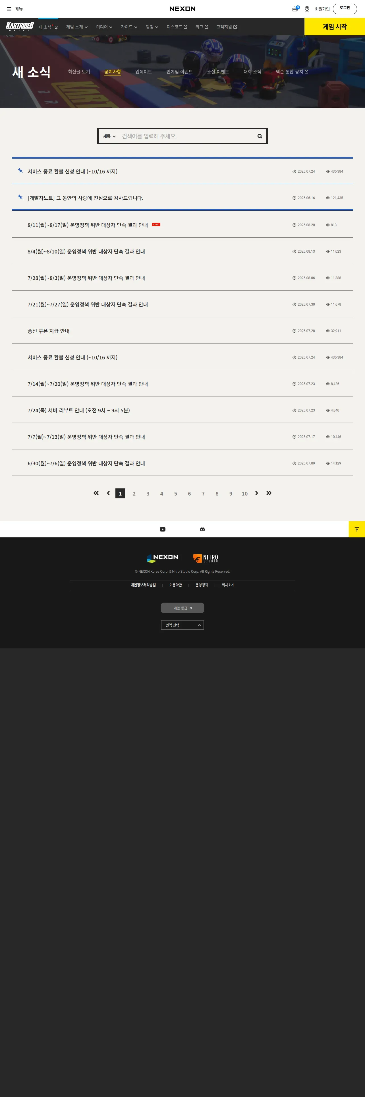 取得元URL: https://kartdrift.nexon.com:443/kartdrift/ko/news/announcement/list