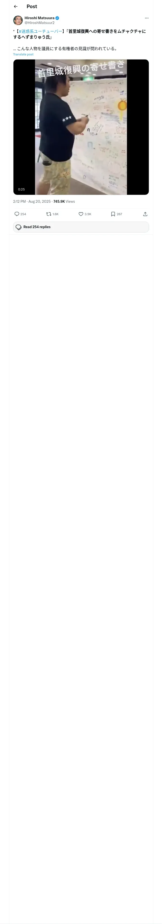 取得元URL: https://x.com:443/HiroshMatsuur2/status/1958034401184641370