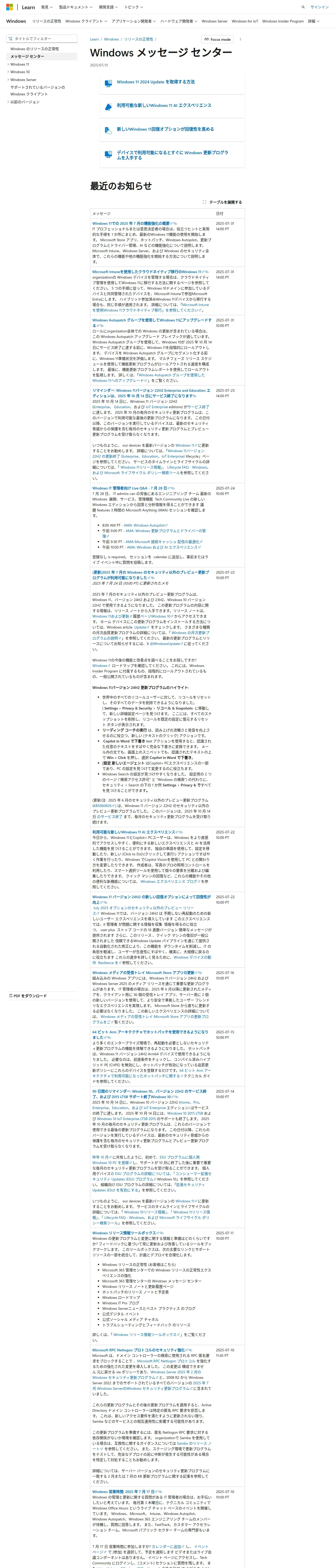 https://learn.microsoft.com:443/ja-jp/windows/release-health/windows-message-center