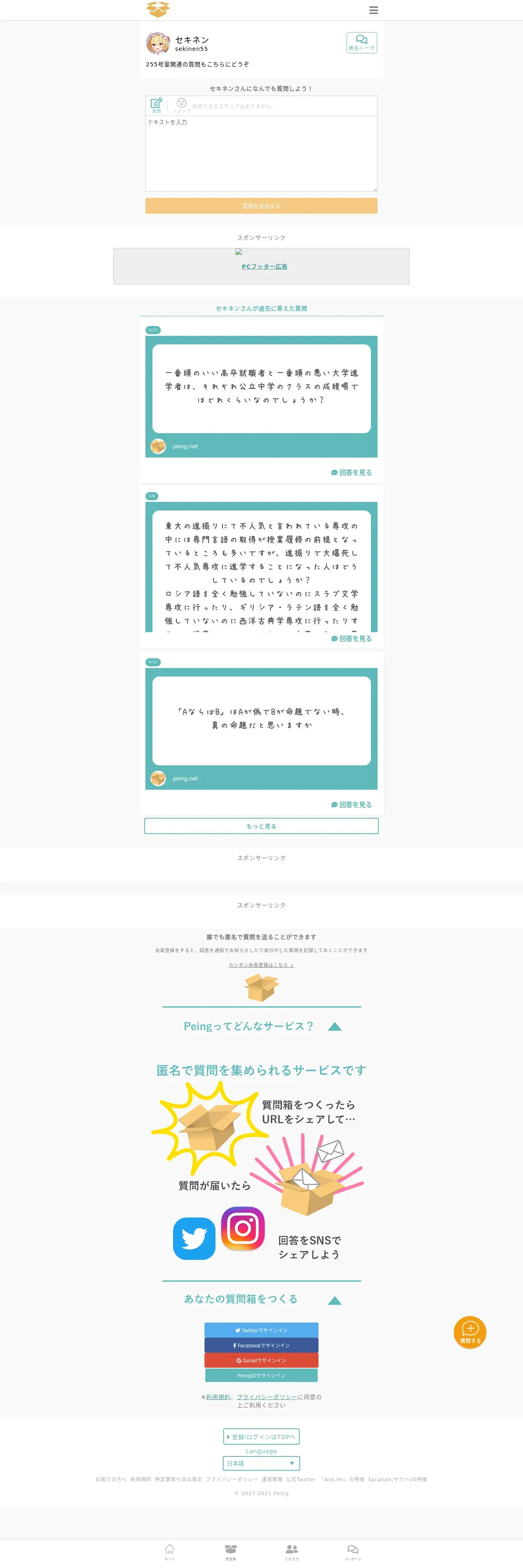 https://peing.net:443/ja/sekinen55