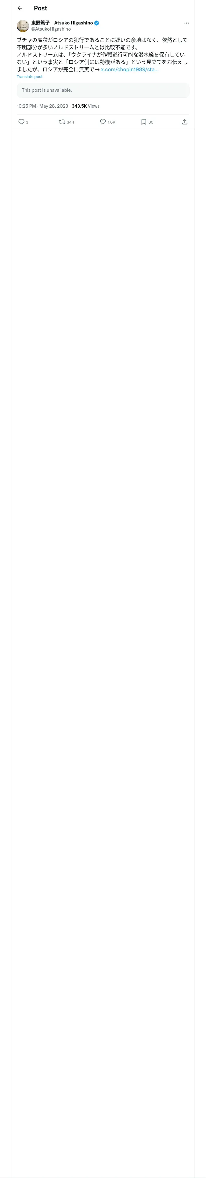 取得元URL: https://x.com:443/AtsukoHigashino/status/1662812289505058817