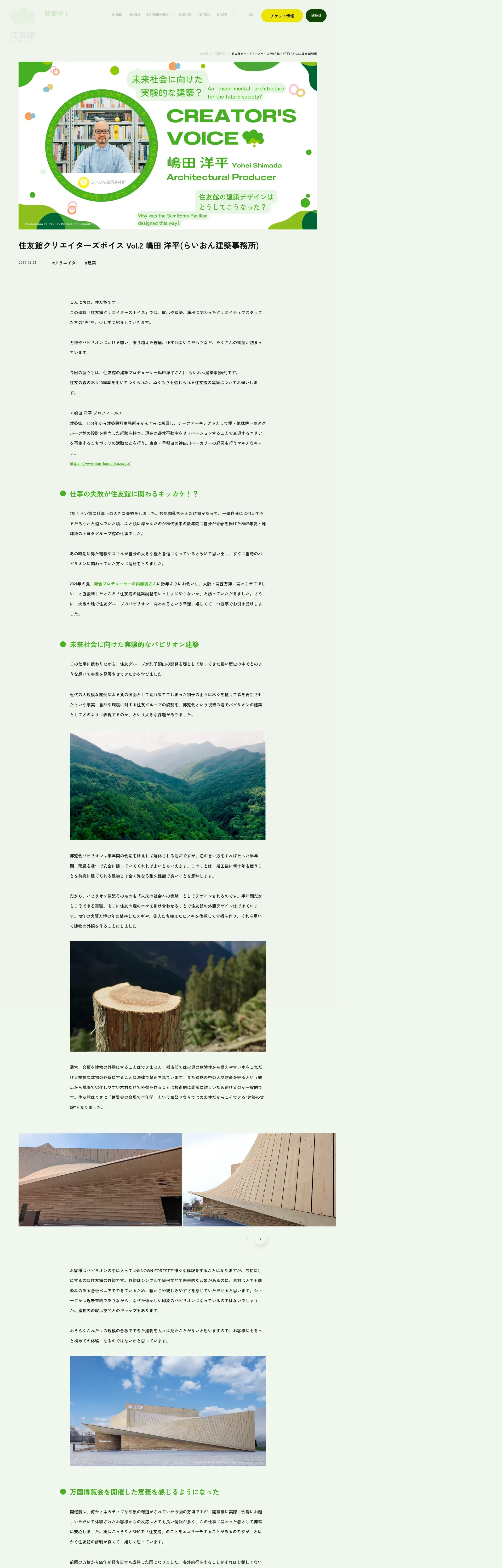 https://sumitomoexpo.com:443/topics/shimadayohei/
