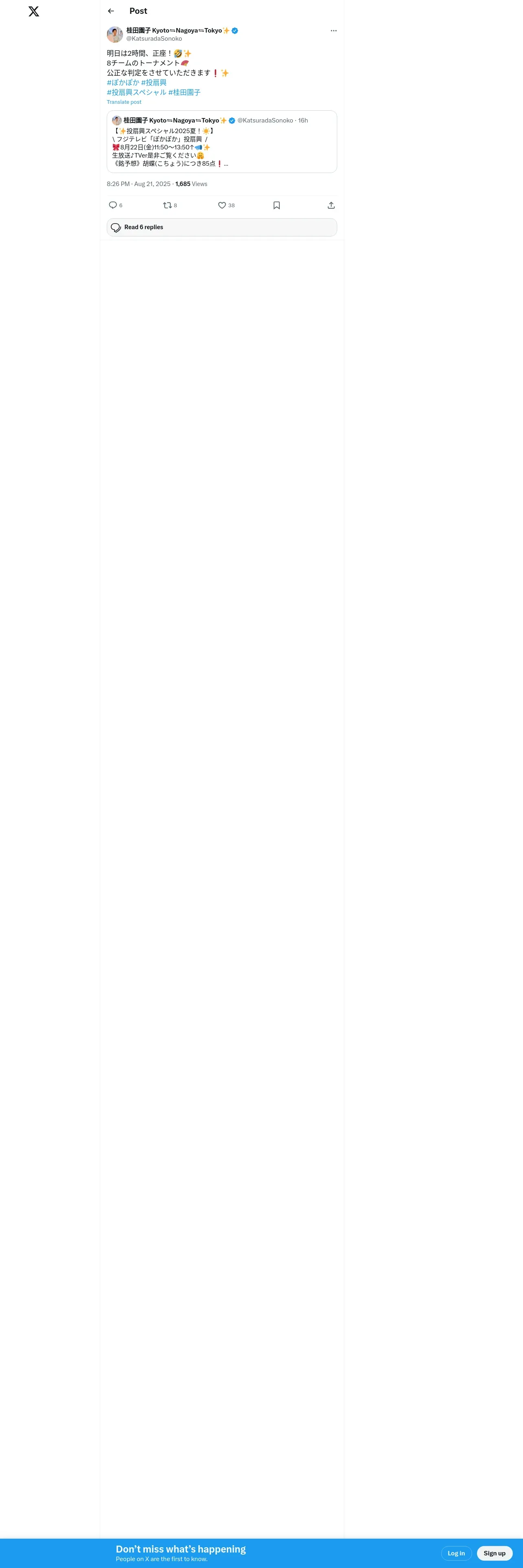 取得元URL: https://mobile.x.com:443/KatsuradaSonoko/status/1958490920443068684