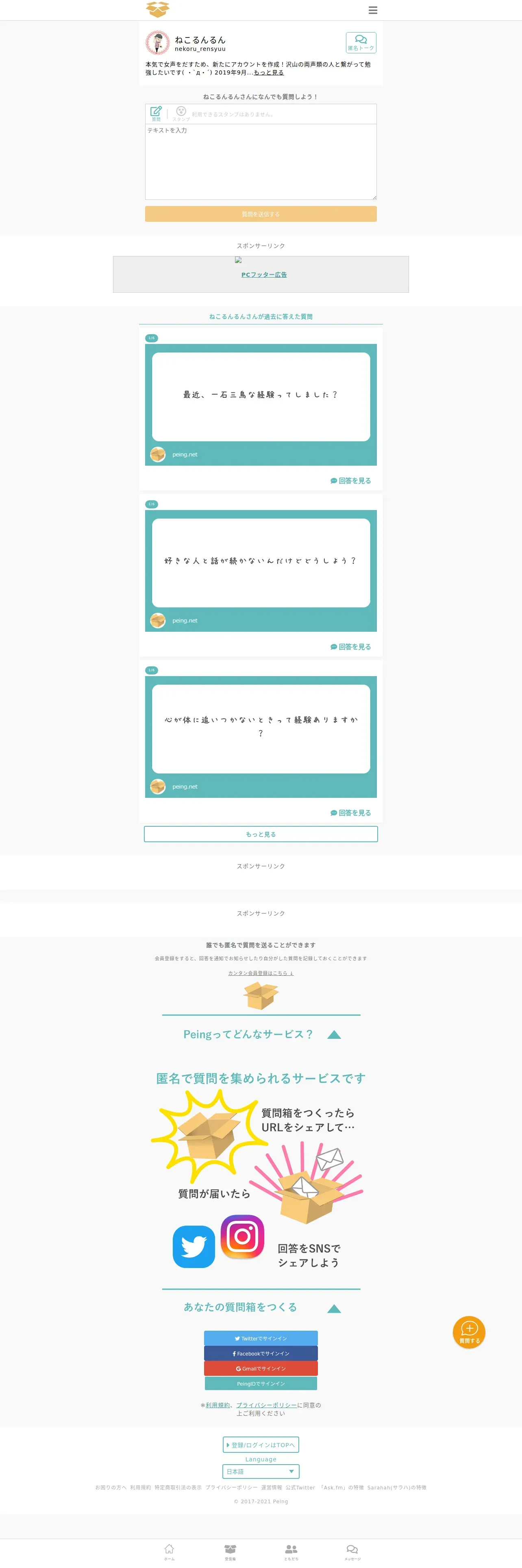https://peing.net:443/ja/nekoru_rensyuu