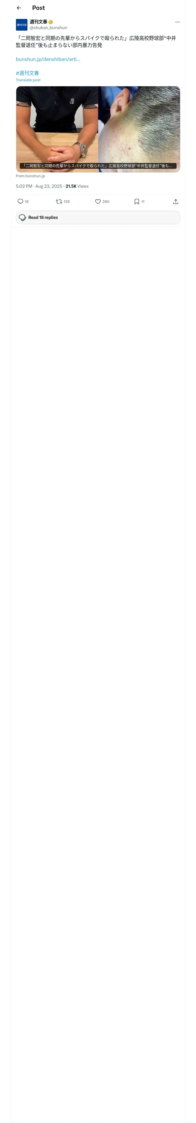 https://x.com:443/shukan_bunshun/status/1959164384707842090