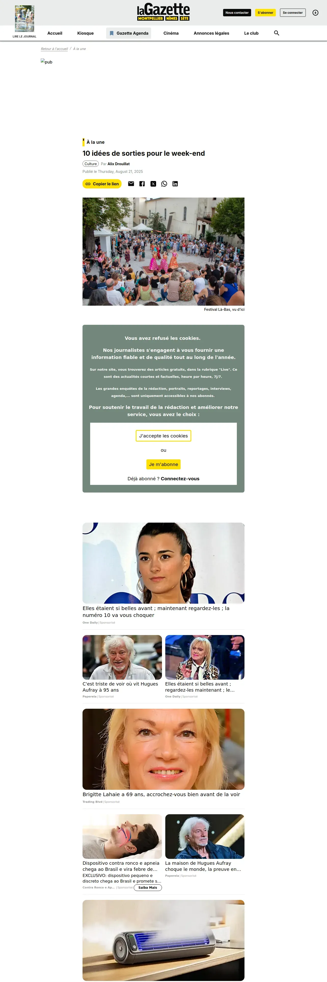 https://www.lagazettedemontpellier.fr:443/culture/2025-08-21-10-idees-de-sorties-pour-le-week-end