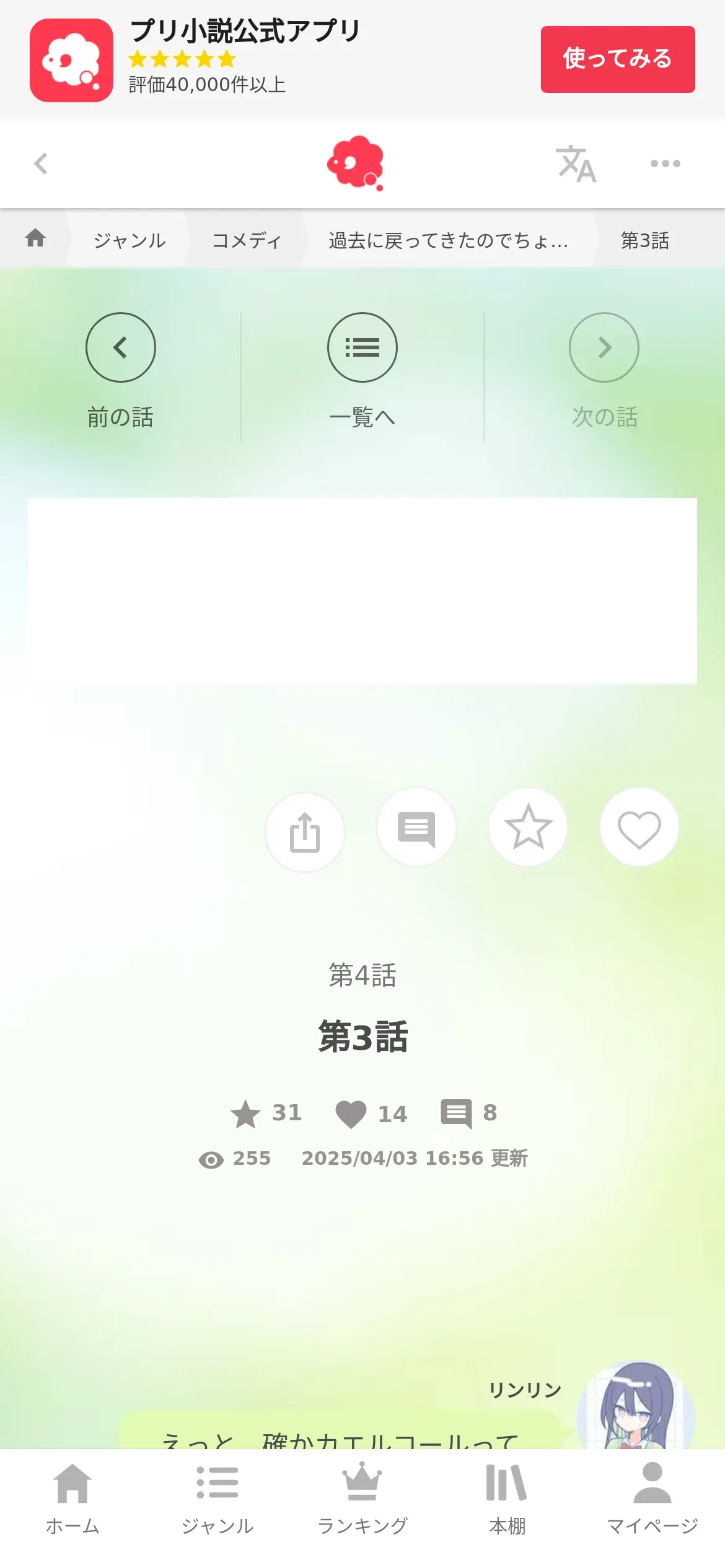 https://novel.prcm.jp:443/novel/EENd2QdWsDj0TEcsLleP/chapter/kYkQkC2HxakBlzVotOrR