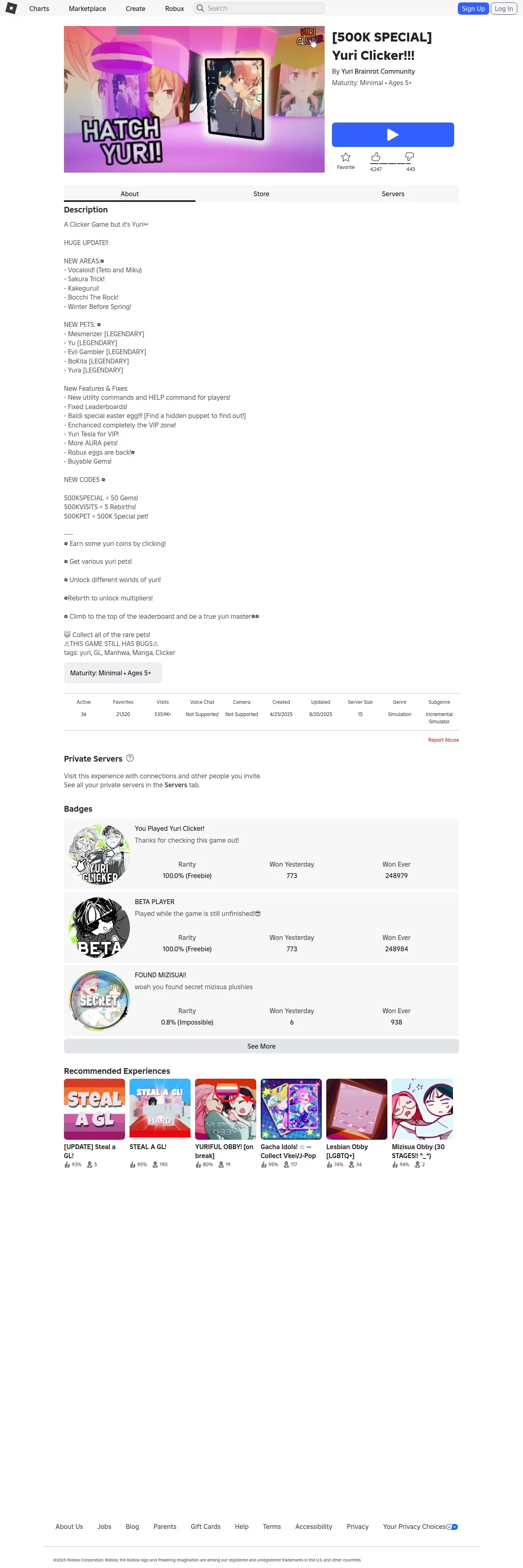 https://www.roblox.com:443/games/85270457977608/500K-SPECIAL-Yuri-Clicker