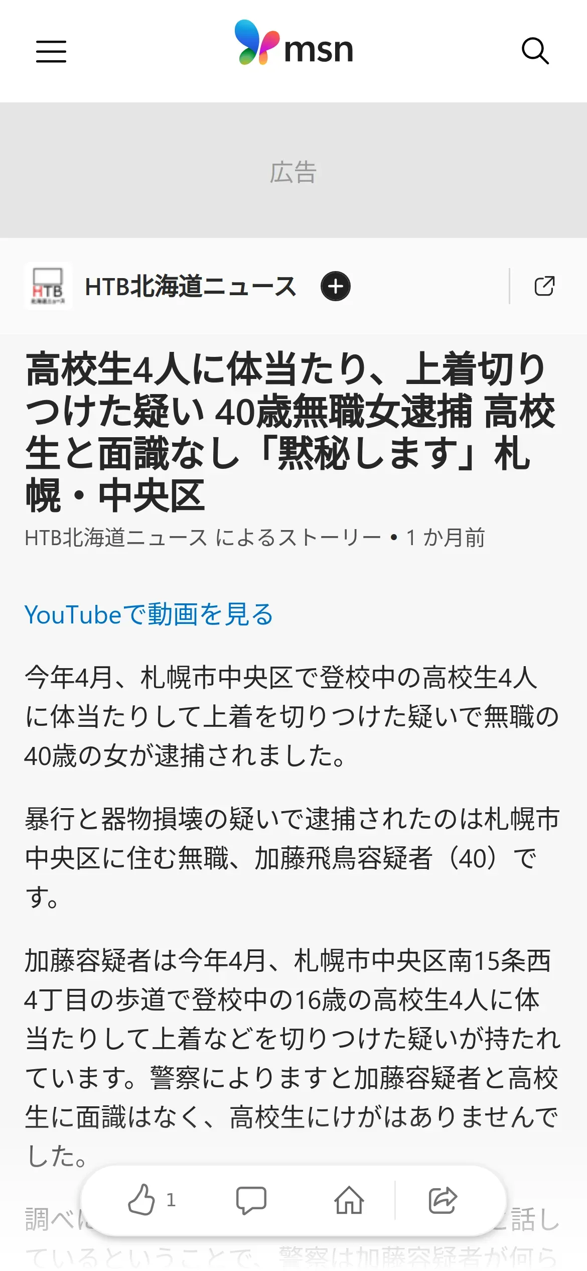 https://www.msn.com:443/ja-jp/news/national/%E9%AB%98%E6%A0%A1%E7%94%9F4%E4%BA%BA%E3%81%AB%E4%BD%93%E5%BD%93%E3%81%9F%E3%82%8A-%E4%B8%8A%E7%9D%80%E5%88%87%E3%82%8A%E3%81%A4%E3%81%91%E3%81%9F%E7%96%91%E3%81%84-40%E6%AD%B3%E7%84%A1%E8%81%B7%E5%A5%B3%E9%80%AE%E6%8D%95-%E9%AB%98%E6%A0%A1%E7%94%9F%E3%81%A8%E9%9D%A2%E8%AD%98%E3%81%AA%E3%81%97-%E9%BB%99%E7%A7%98%E3%81%97%E3%81%BE%E3%81%99-%E6%9C%AD%E5%B9%8C-%E4%B8%AD%E5%A4%AE%E5%8C%BA/ar-AA1I6uyx