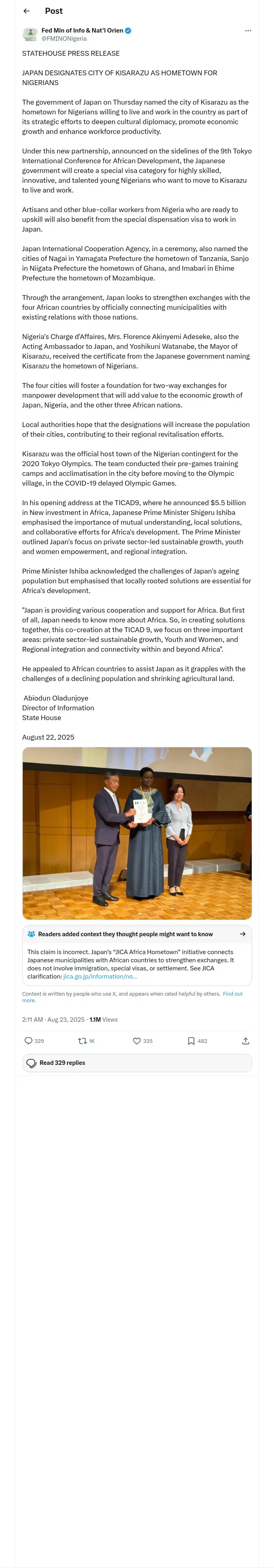 取得元URL: https://x.com:443/FMINONigeria/status/1958939981562462677