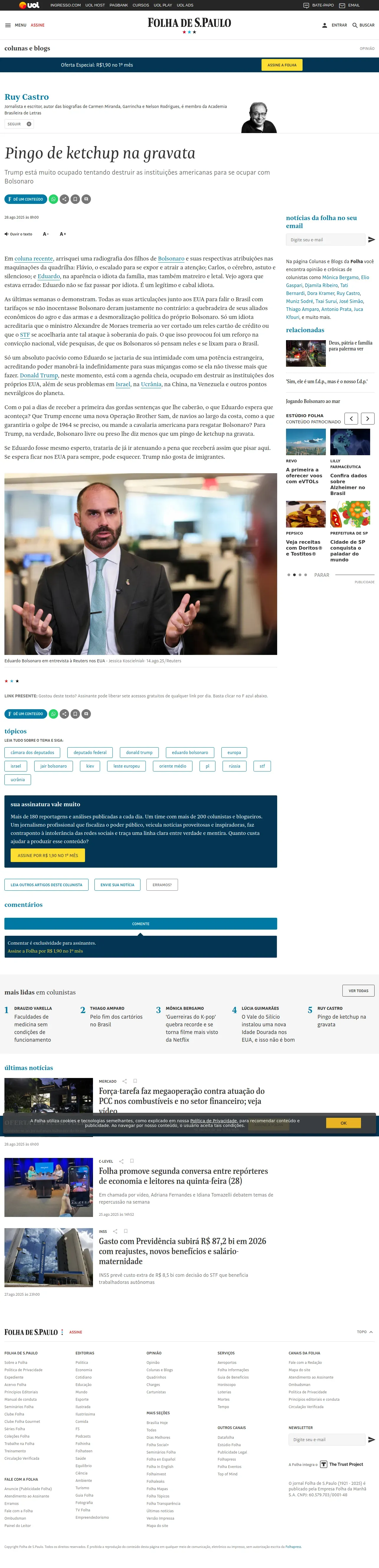 https://www1.folha.uol.com.br:443/colunas/ruycastro/2025/08/pingo-de-ketchup-na-gravata.shtml