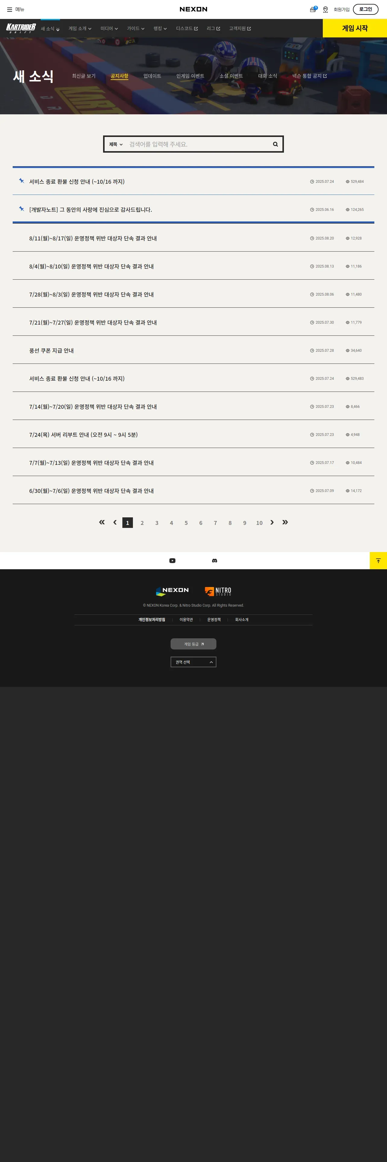取得元URL: https://kartdrift.nexon.com:443/kartdrift/ko/news/announcement/list