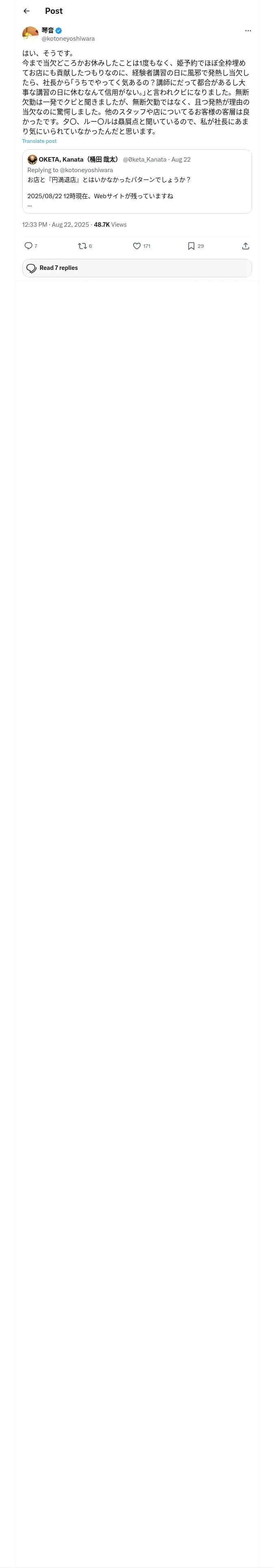取得元URL: https://x.com:443/kotoneyoshiwara/status/1958734214821814304