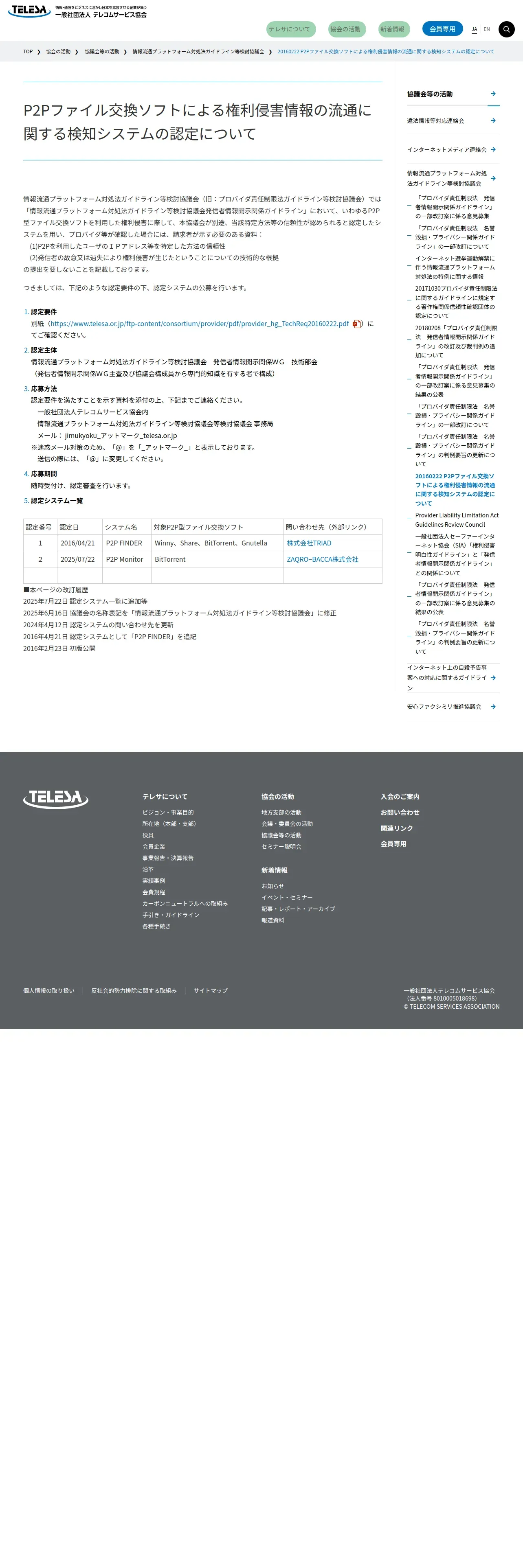 https://www.telesa.or.jp:443/consortium/provider/p2ptechreq/index.html