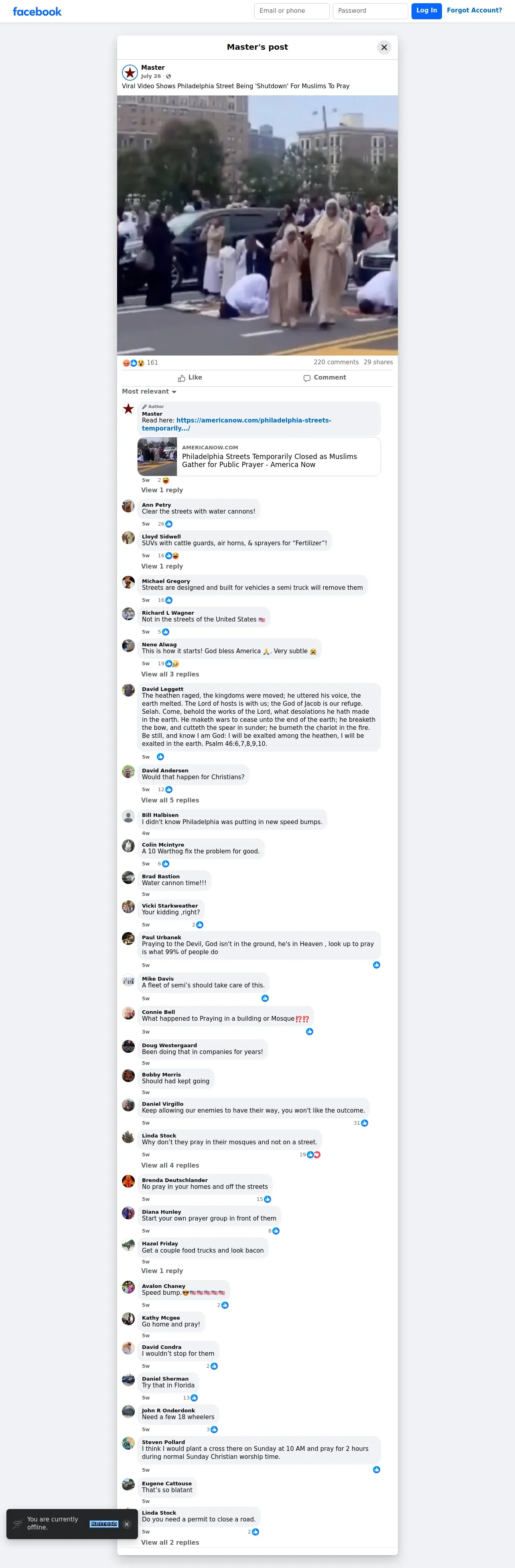 https://www.facebook.com:443/AmericaNewsInTheUSA/posts/viral-video-shows-philadelphia-street-being-shutdown-for-muslims-to-pray/804595415473642/