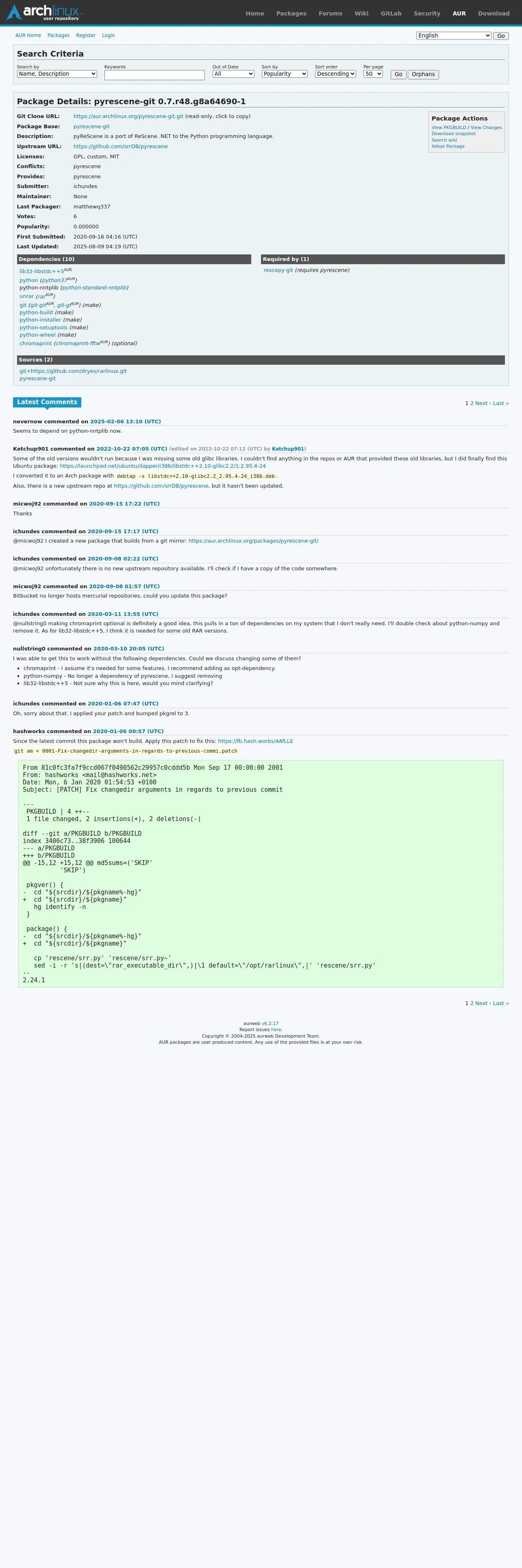 https://aur.archlinux.org:443/packages/pyrescene-git