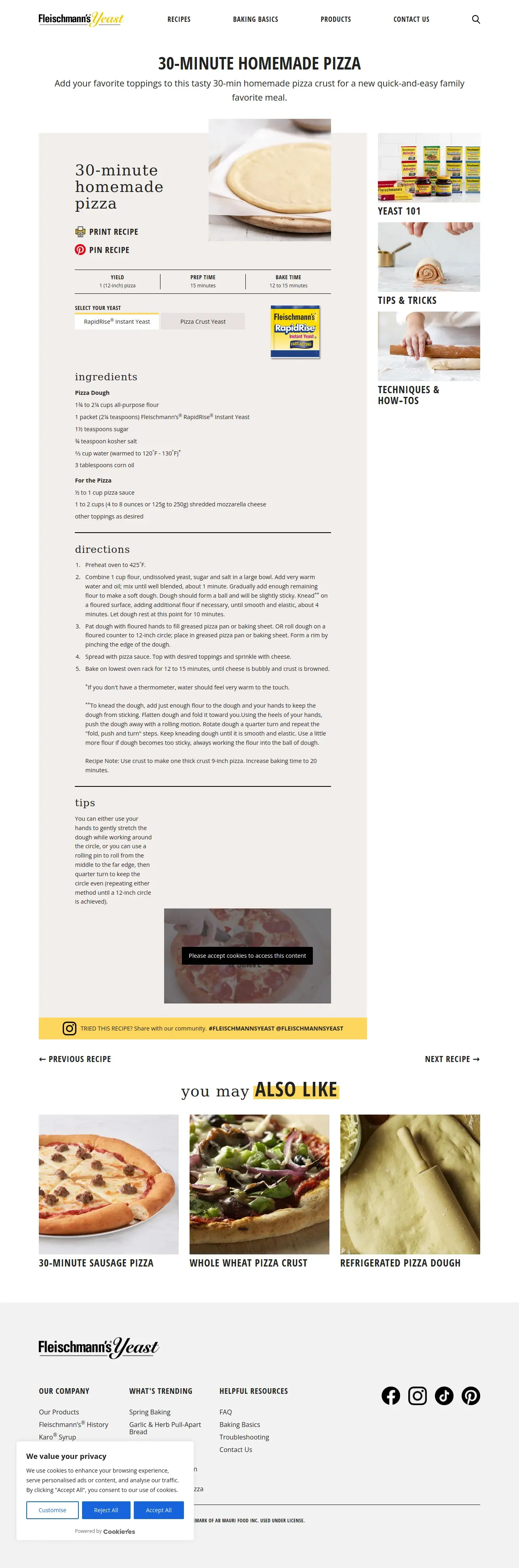取得元URL: https://www.fleischmannsyeast.com:443/recipe/30-minute-homemade-pizza/