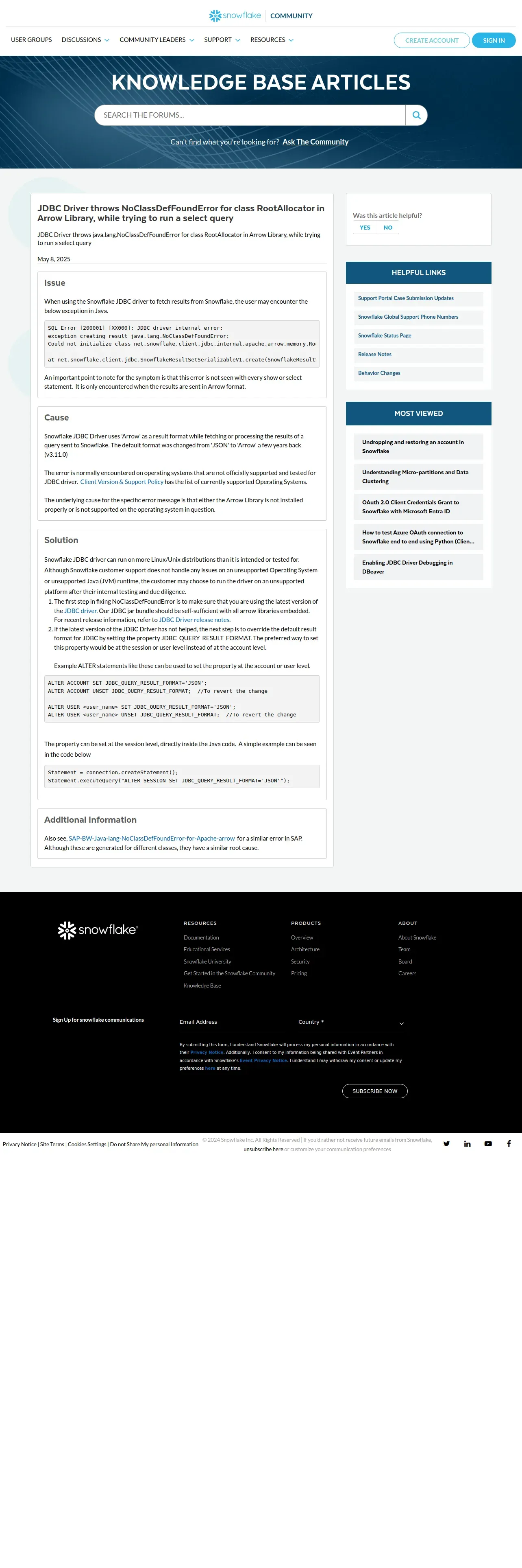 https://community.snowflake.com:443/s/article/Getting-java-lang-NoClassDefFoundError-for-class-RootAllocator