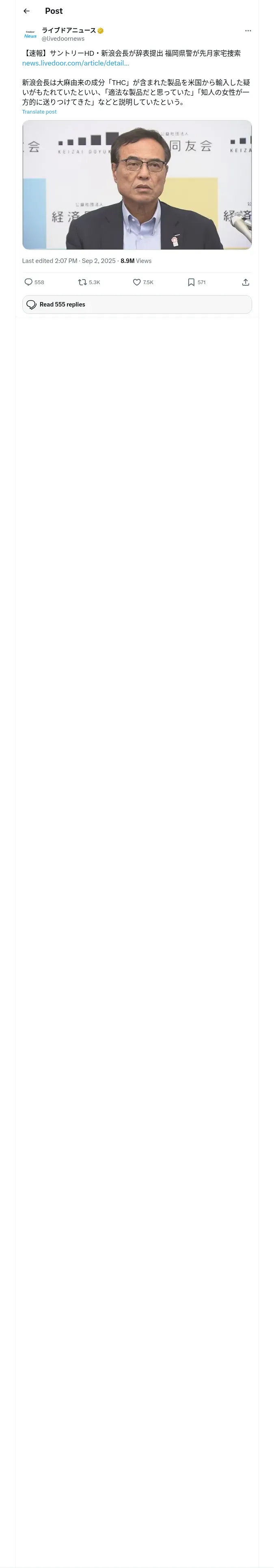 https://x.com:443/livedoornews/status/1962744084290027643