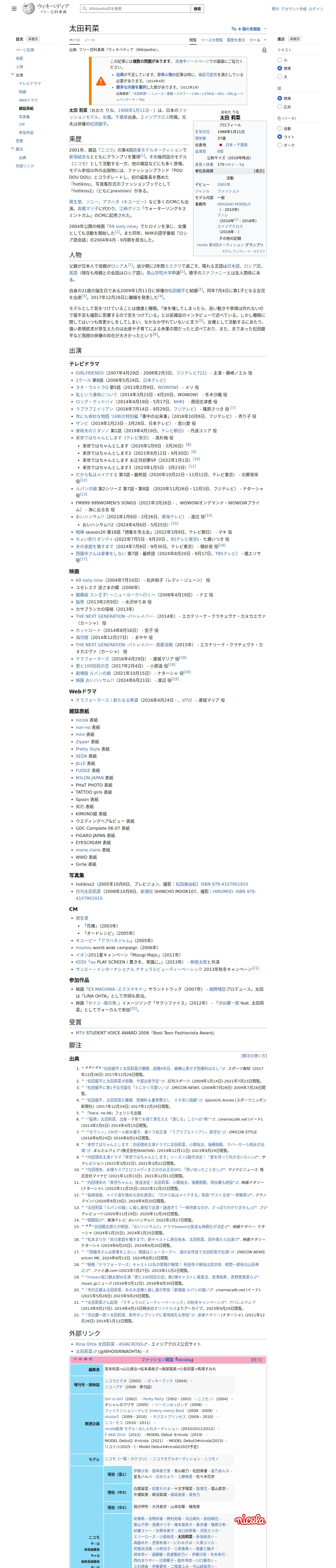 https://ja.wikipedia.org:443/wiki/%E5%A4%AA%E7%94%B0%E8%8E%89%E8%8F%9C