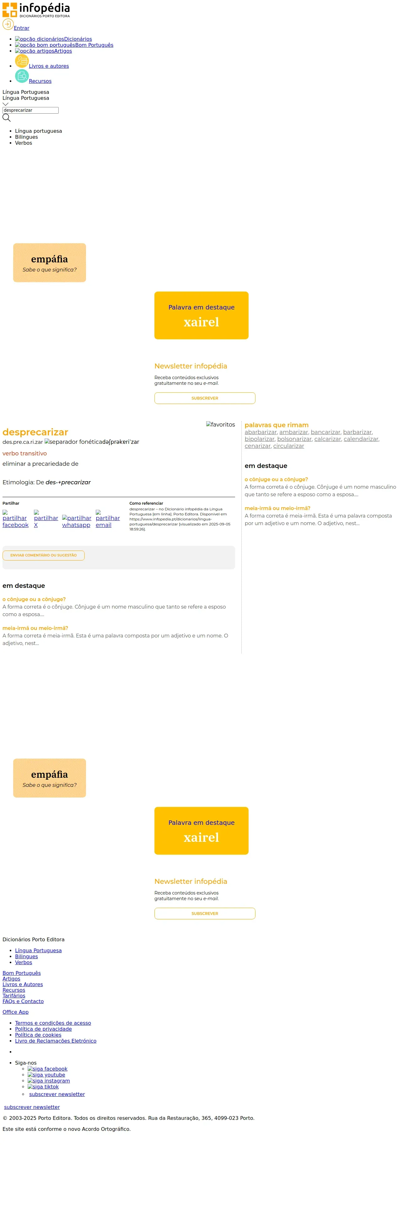 https://www.infopedia.pt:443/dicionarios/lingua-portuguesa/desprecarizar