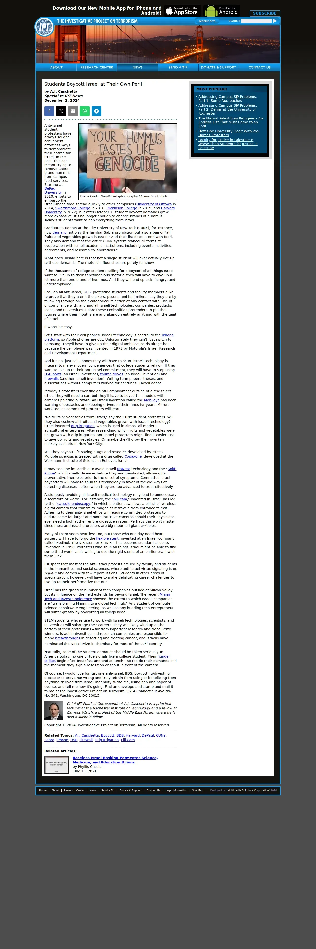 https://www.investigativeproject.org:443/9380/students-boycott-israel-at-their-own-peril