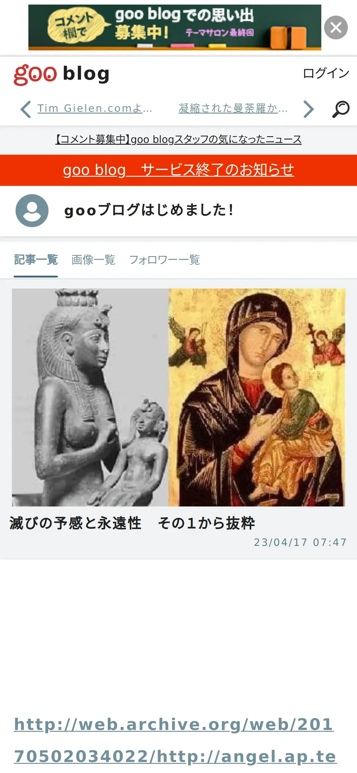 ウェブ魚拓からお知らせ