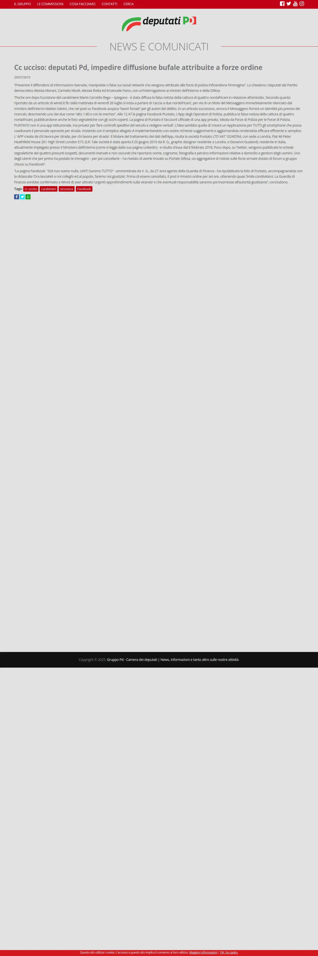https://www.deputatipd.it:443/news/cc-ucciso-deputati-pd-impedire-diffusione-bufale-attribuite-forze-ordine