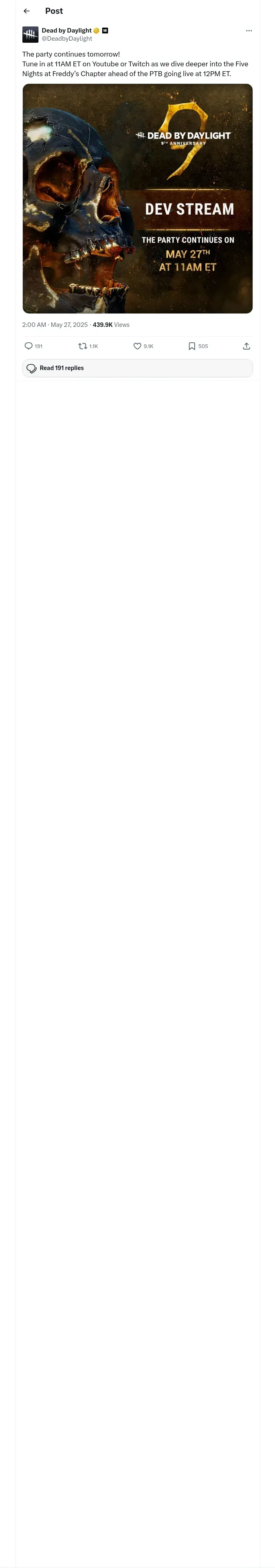 https://x.com:443/DeadbyDaylight/status/1927047176774926427