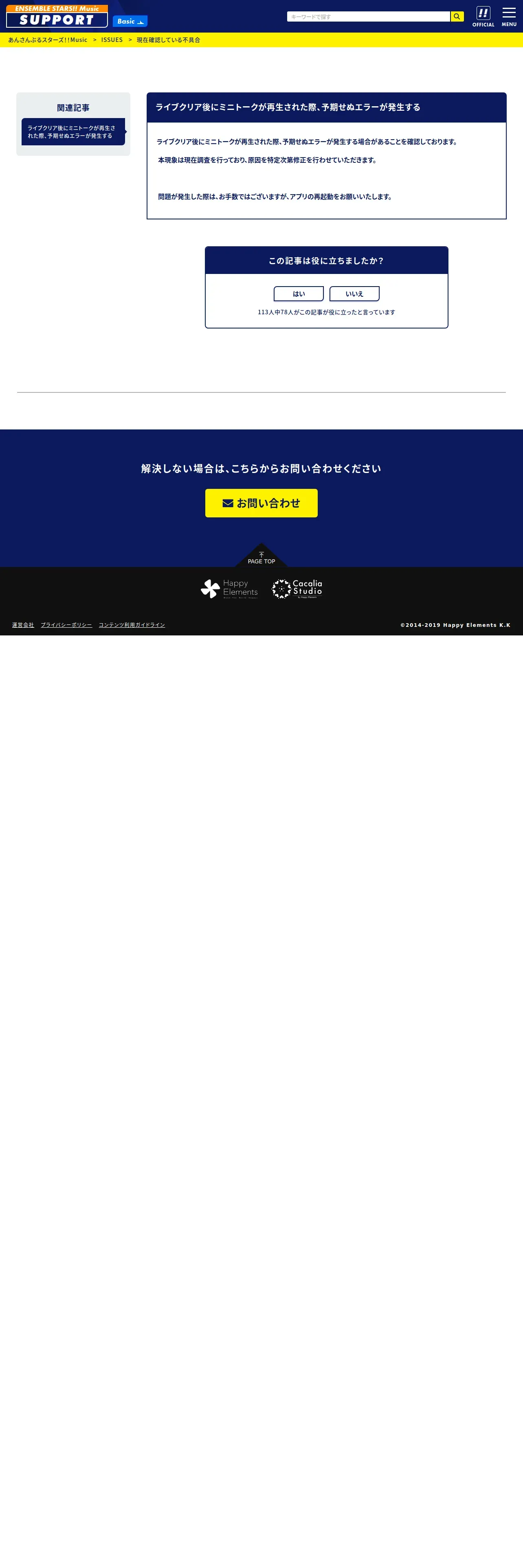 https://ensemble-stars-music.zendesk.com:443/hc/ja/articles/49171887952153-%E3%83%A9%E3%82%A4%E3%83%96%E3%82%AF%E3%83%AA%E3%82%A2%E5%BE%8C%E3%81%AB%E3%83%9F%E3%83%8B%E3%83%88%E3%83%BC%E3%82%AF%E3%81%8C%E5%86%8D%E7%94%9F%E3%81%95%E3%82%8C%E3%81%9F%E9%9A%9B-%E4%BA%88%E6%9C%9F%E3%81%9B%E3%81%AC%E3%82%A8%E3%83%A9%E3%83%BC%E3%81%8C%E7%99%BA%E7%94%9F%E3%81%99%E3%82%8B