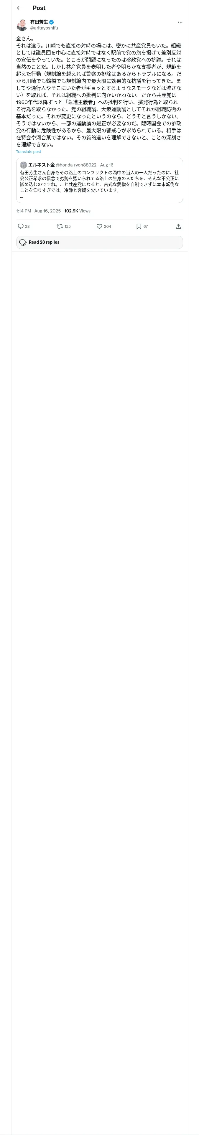 取得元URL: https://x.com:443/aritayoshifu/status/1956570145100550464