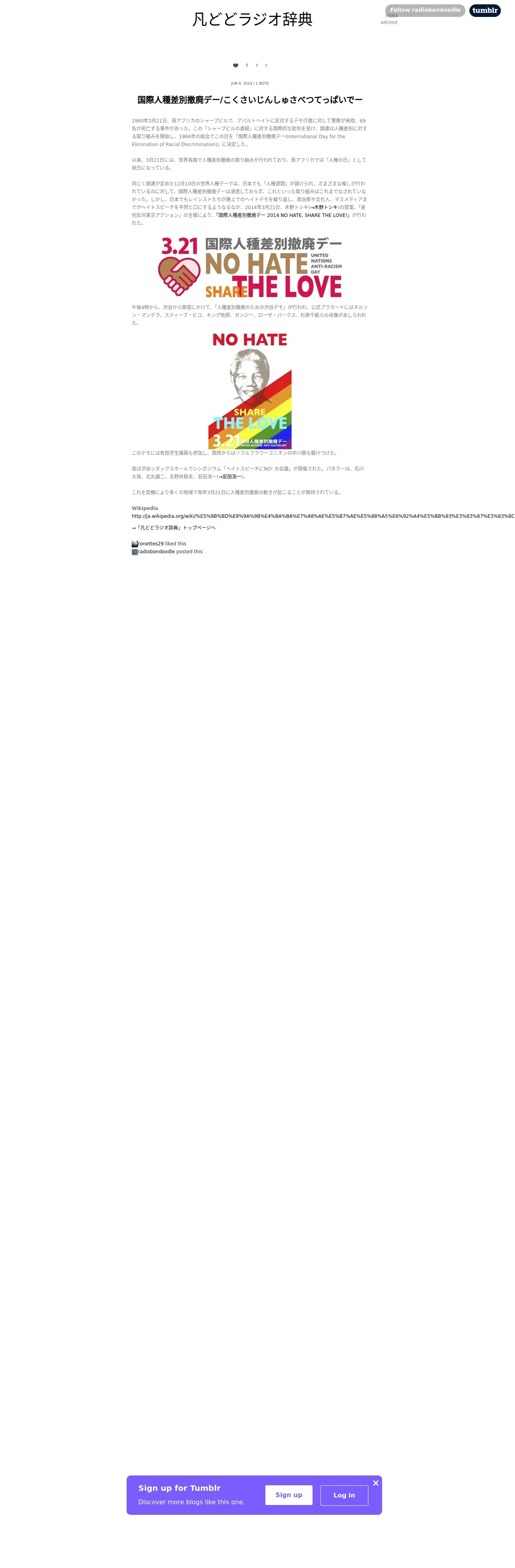 https://radiobondoodle.tumblr.com:443/post/88257750788/%E5%9B%BD%E9%9A%9B%E4%BA%BA%E7%A8%AE%E5%B7%AE%E5%88%A5%E6%92%A4%E5%BB%83%E3%83%87%E3%83%BC%E3%81%93%E3%81%8F%E3%81%95%E3%81%84%E3%81%98%E3%82%93%E3%81%97%E3%82%85%E3%81%95%E3%81%B9%E3%81%A4%E3%81%A6%E3%81%A3%E3%81%B1%E3%81%84%E3%81%A7%E3%83%BC
