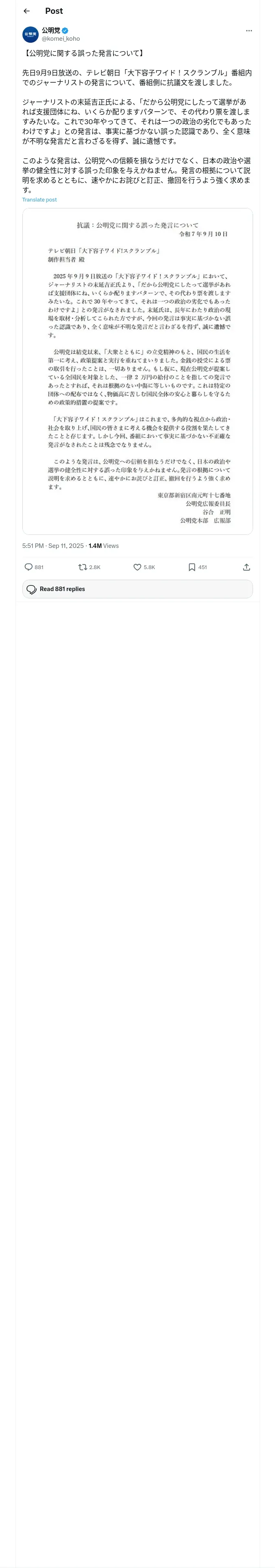 https://x.com:443/komei_koho/status/1966062143138378080